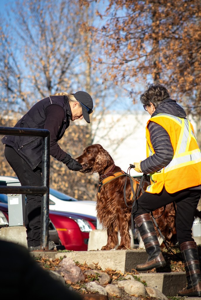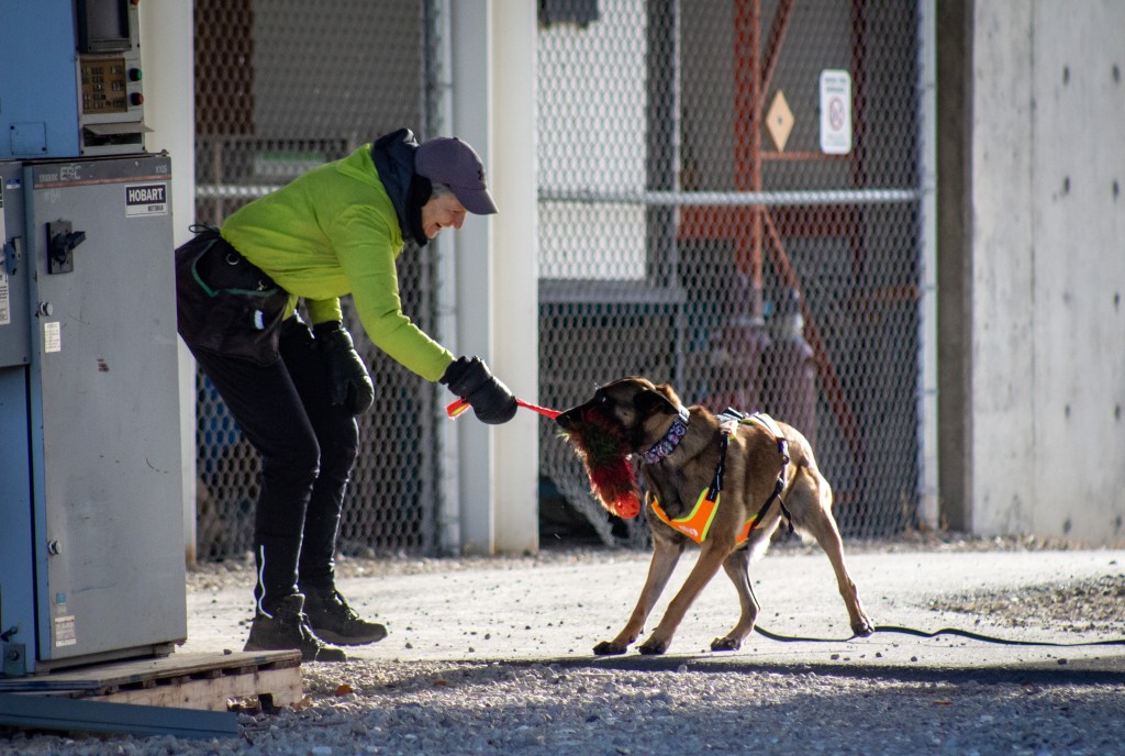 Trails were a natural shape, no big 90 degree turns, no worries about missing articles. Because we have trail layers walking naturally from start to end, leaving scent to help dogs ‘connect the dots’ and waiting at the end to praise, play and reward every dog!