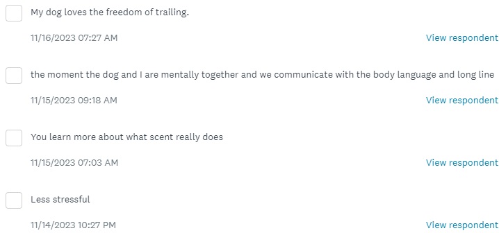 I hope you will check this out. We have some exciting plans for trailing. But you know what else? We just want to be the best trainers we can be, and see our dogs having fun, and freedom, to work scent in the best way they can.