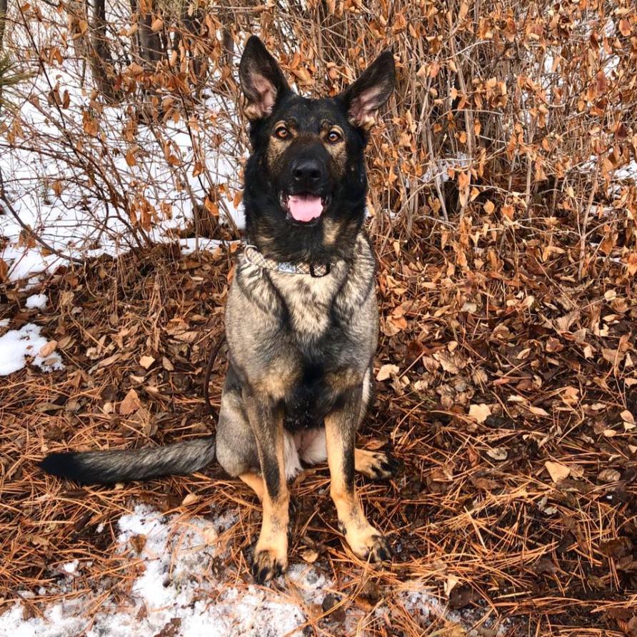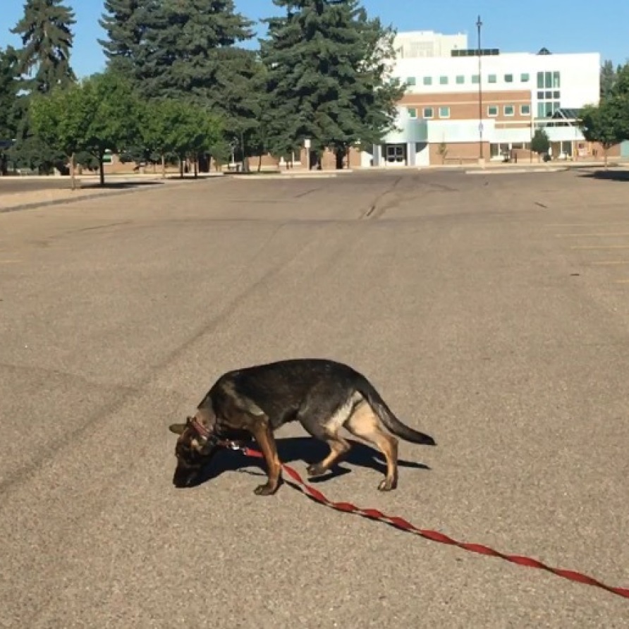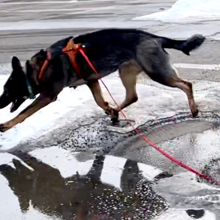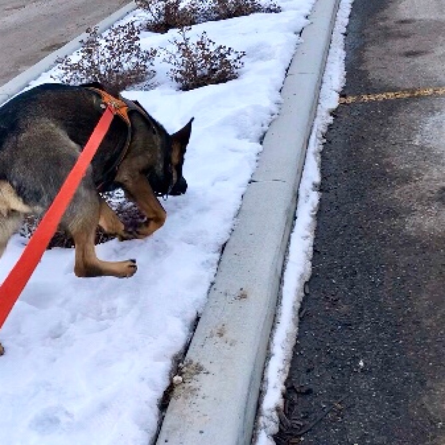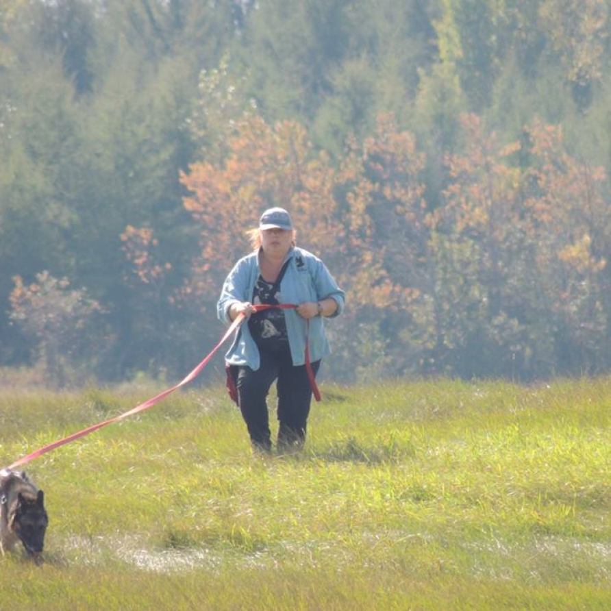 Below Caden are pictures of my current, mature partner Micah, Gem von Wendelin. Her claim to fame is that she was running full advanced urban tracks by 6 months of age! I am always trying new methods and ideas, and try them on my own dogs before bringing them into my training. Unfortunately due to a long wait for a hip replacement, followed by COVID-19 where I judged a lot locally. Excited to be back at testing with my own dogs!